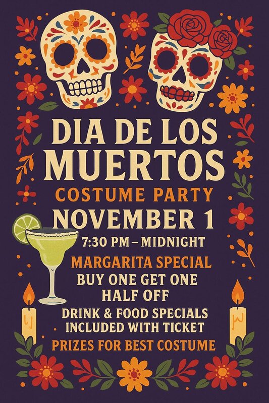 💀✨ Día de los Muertos Costume Party — November 1st | 7:30 PM–Midnight ✨💀